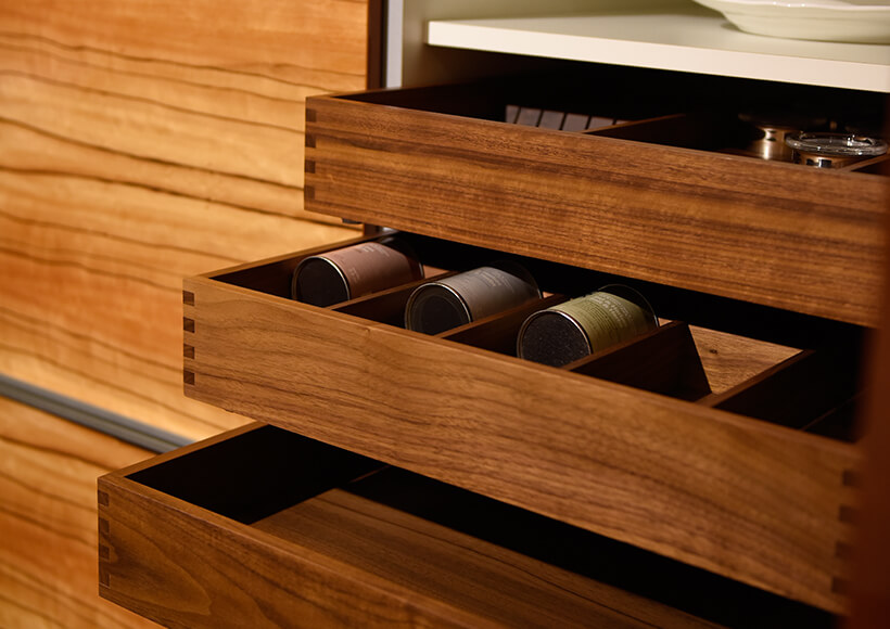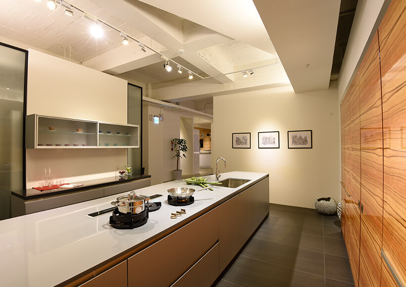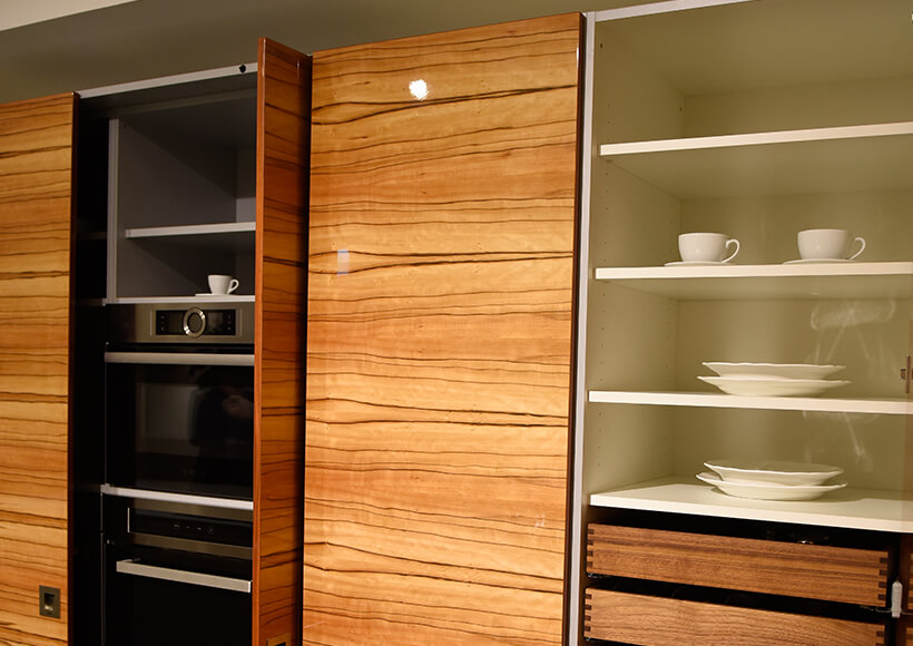 With wood veneer of Tineo and piano gloss lacquer 13 times, whole kitchen is Brilliant.