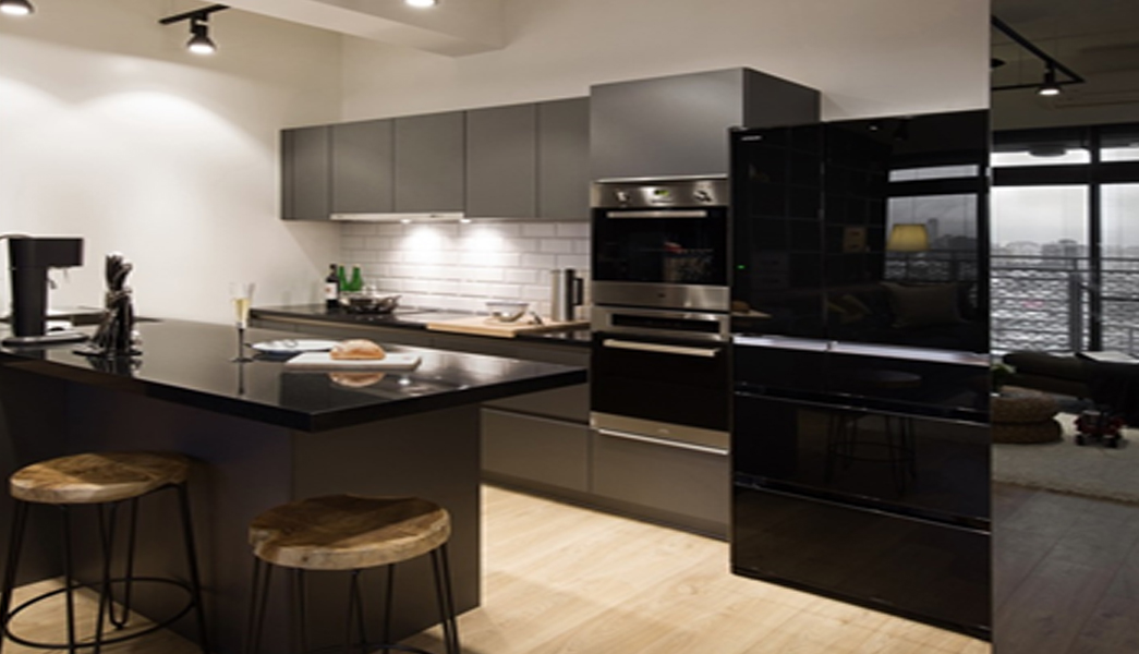 • 廚具空間,以黑灰為主要空間基調,透過白磚及棕色原木注入住宅必備的溫暖與安全感,用顏色打造屬於自己的工業空間樣式。